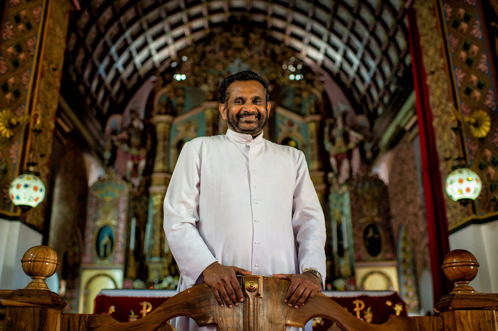 Ein anderes Mal hielten wir bei einer christlichen Kirche, von denen es in Kerala einige gibt, da dieser indische Bundesstaat einmal eine portugiesische Kolonie war. Dort konnte ich den Priester davon überzeugen, sich von mir in seiner schönen Kirche porträtieren zu lassen – und wieder war das 35er die richtige Wahl.