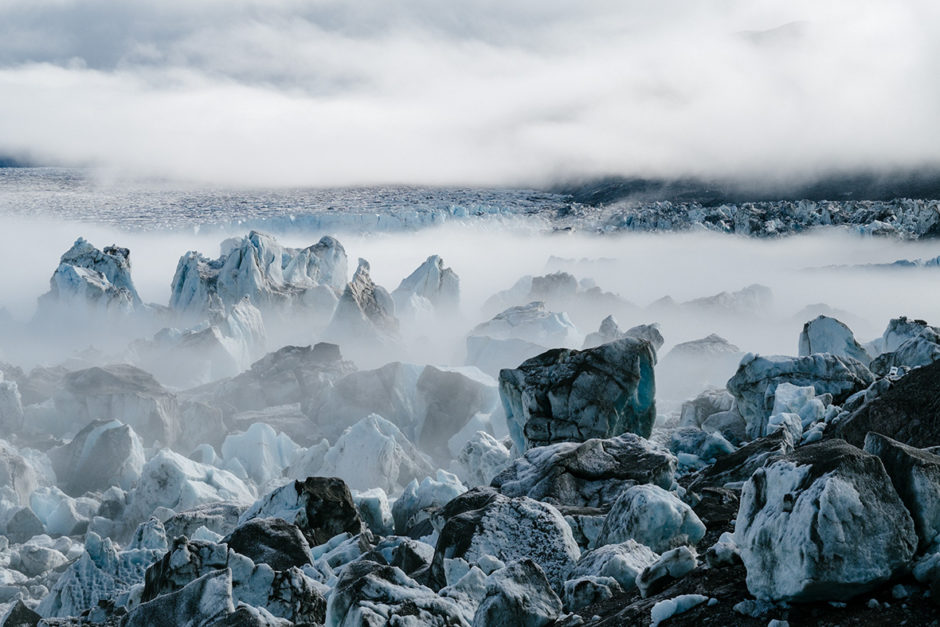 Martin Hülle: Als ich im südgrönländischen Johan Dahl Land am Hullet ankam und den ersten Blick auf diese Wahnsinnsszenerie warf. Umgeben von Ausläufern des Inlandeises lagen dort auf einer Fläche mehrerer Quadratkilometer haushohe Eisgebilde auf Grund. Dieser Ort zog mich so sehr in seinen Bann, dass ich mich nur schwer davon lossagen konnte. Die Stimmung war mystisch, und inmitten all der Gletscher fühlte ich mich angekommen in einer eisigen Oase in wilder Einsamkeit.
