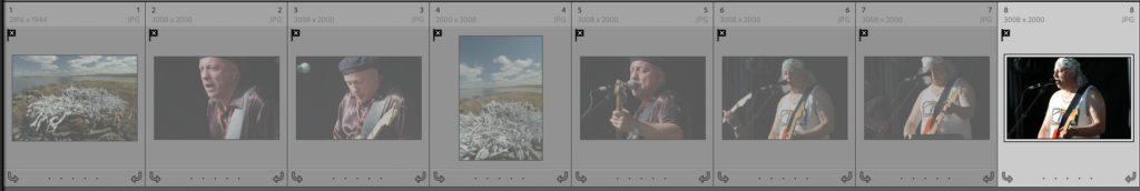 Geht man auf einen der Dupliaktseinträge der Sammlungsgruppe, so lassen sich in der Vorschau in der Matrix-Ansicht die Bilder vergleichen und so die besten heraussuchen. Man kann nun die schlechteren Bilder einer Reihe mit der (X)-Taste zum Verwerfen kennzeichnen. Sie erhalten damit die Abgelehnt-Flagge und werden halb ausgegraut angezeigt. Achten Sie aber beim X-en darauf, dass wirklich nur die gewünschten Bilder selektiert sind, da sonst auch die anderen (aktuell selektierten) Bilder die -Flagge erhalten. (Ein Bild mit der -Markierung lässt sich mittels der (U)-Taste (für un-flag) wieder von der Abgelehnt-Flagge befreien.) Drückt man zusammen mit der (X)- oder(U)-Taste die Q-Taste, geht Lightroom automatisch zu nächsten Bild.