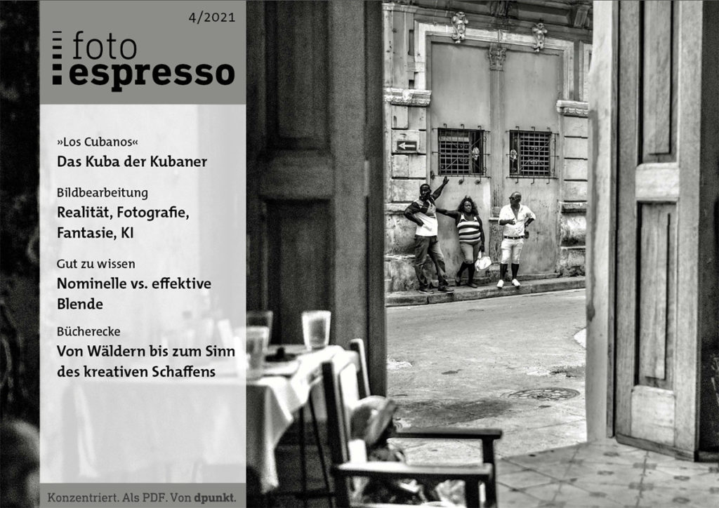 in dieser Ausgabe von fotoespresso sprechen wir unter anderem über die Abstufungen von Realität, Fotografie, Fantasie und KI. Außerdem erklären wir den Unterschied zwischen nomineller und effektiver Blende und zeigen, dass sich Makroaufnahmen auch mit Teleobjektiven erstellen lassen. Daneben stellen wir eine Reihe interessanter Bücher zum Thema Fotografie vor und verdeutlichen uns, dass man sich auch während eines Campingurlaubs fotografische Aufgaben stellen kann.