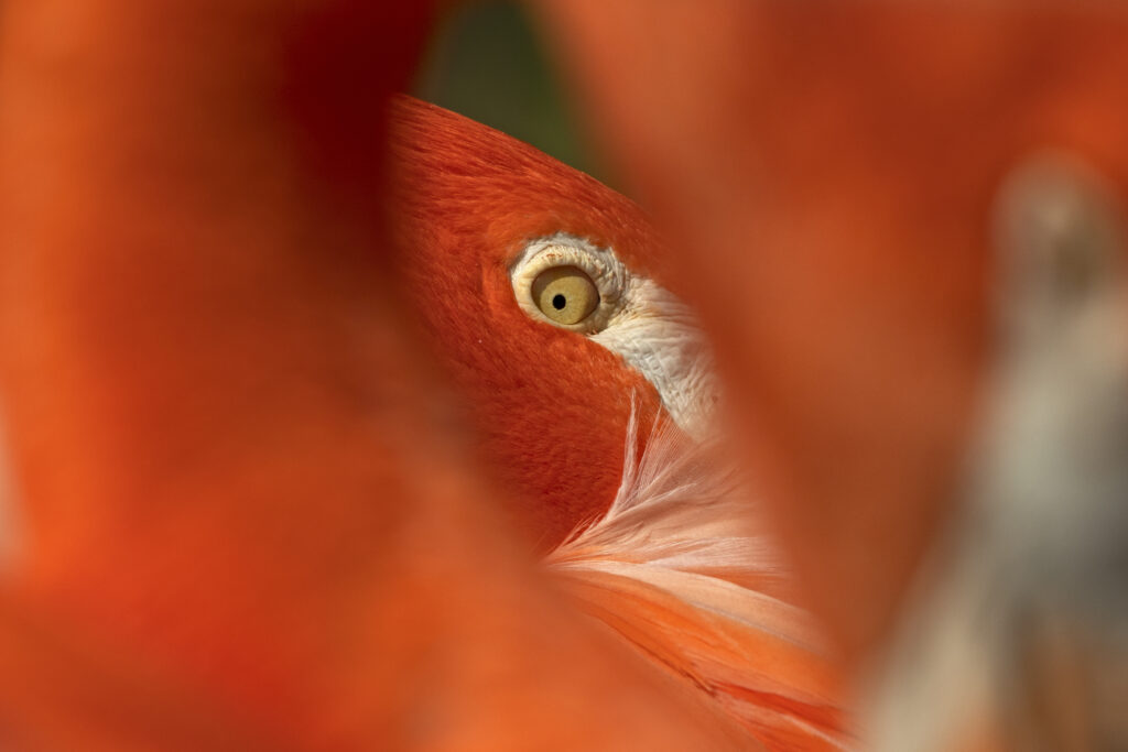 Ich benutze eine lange Brennweite und konzentriere mich auf bestimmte Details, auf einzelne Tiere, besondere Verhaltensweisen (Flamingos streiten sich sehr gerne) oder interessante Perspektiven, wie beispielsweise zwei sich kreuzende Schnäbel. Die Gefiederfarbe der Flamingos reicht von Weiß über Rosa bis Orange. Bei schlechten Lichtbedingungen können