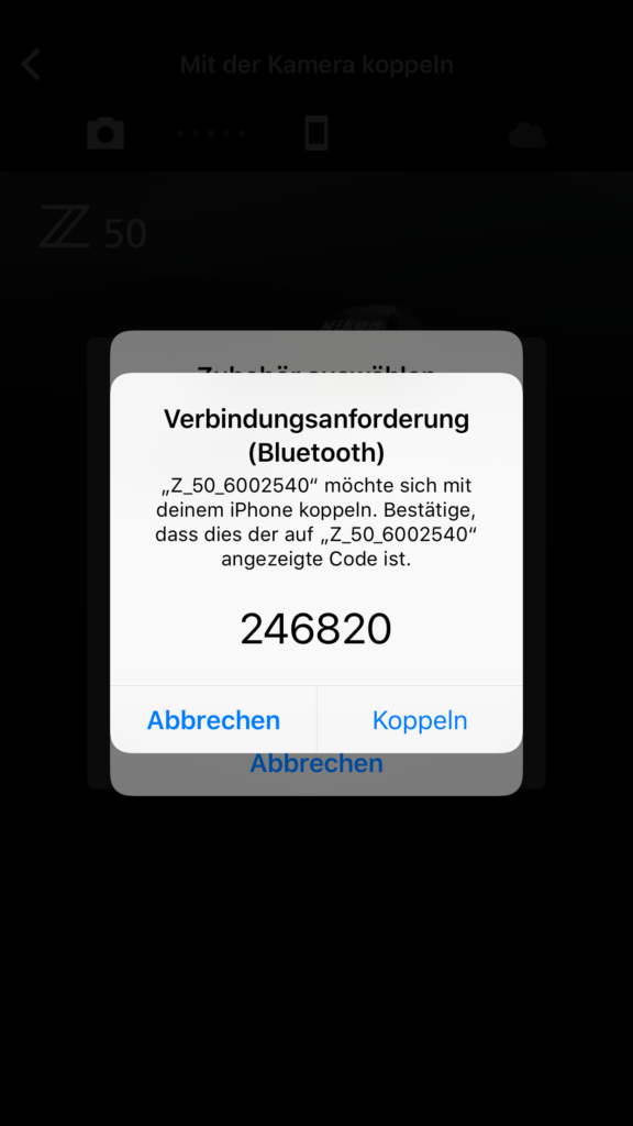 Hallo, ich versuche mein iPhone 13 Pro mit der Z50 mittels Bluetooth zu verbinden.kopplungsdialog auf Kamera sehe ich, doch dann arbeitet das iPhone und es kommt zu keiner Verbindungsanforderung. Hat jemand eine Idee?