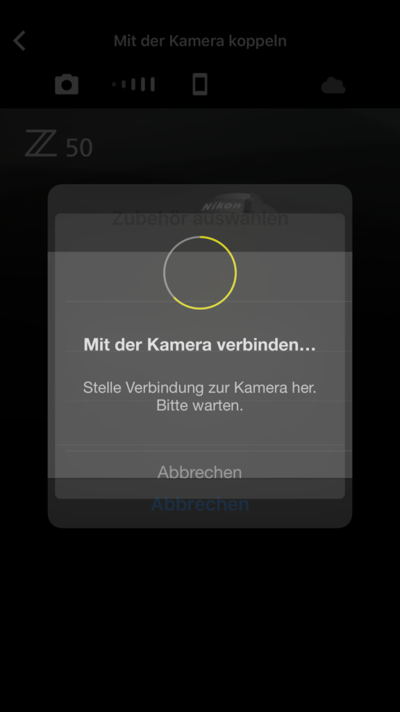 gehen Sie doch mal in die Einstellungen des iPhones und prüfen Sie, ob unter „Bluetooth“ die Kamera angezeigt wird. Wenn nein, läuft Bluetooth auf der Z50 noch nicht. Wenn ja, tippen Sie den Eintrag einmal an, vielleicht geht es von da aus weiter?